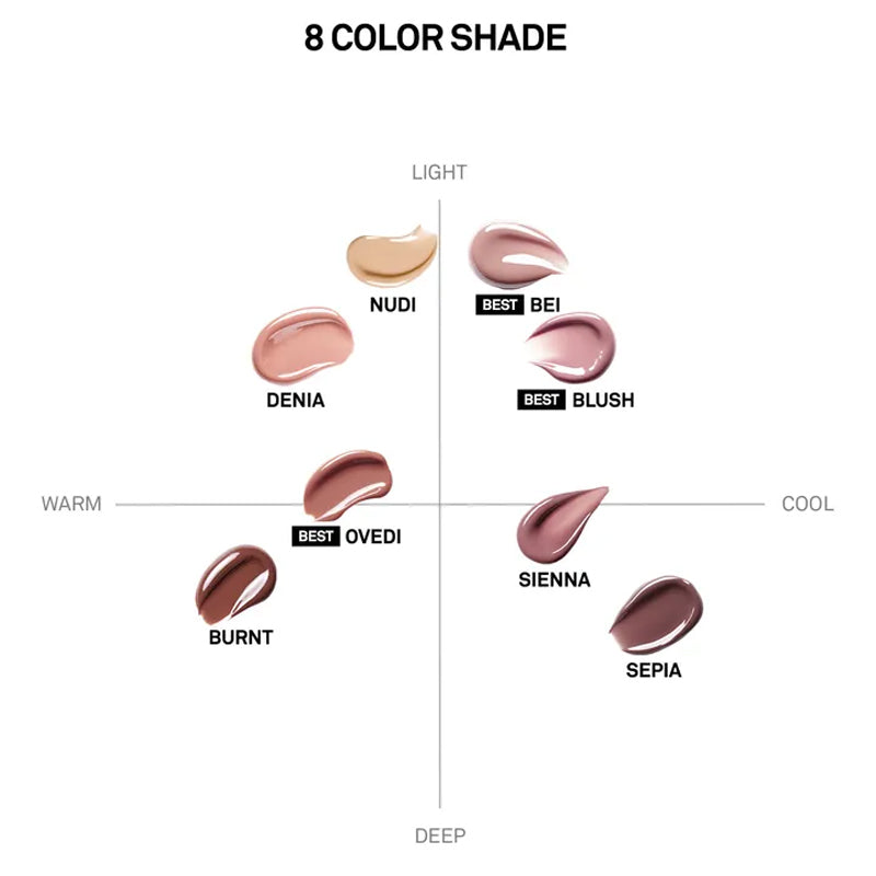 NUDI : A natural skin beige that melts seamlessly into the complexion.