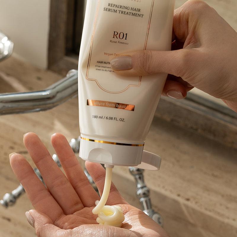 • Its rich, aromatic formula not only repairs from within but also leaves a sophisticated Rose Freesia scent, turning your hair care routine into an exquisite sensory indulgence. Experience immediate revitalization and long-lasting manageability.