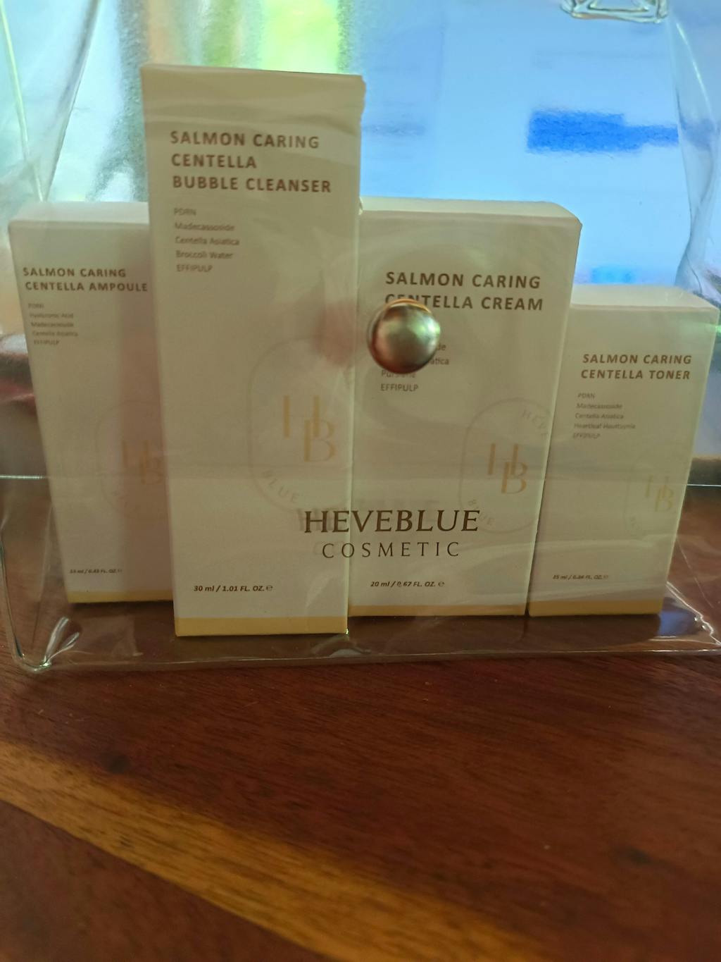 Explore the Salmon Line by HEVEBLUE in a compact size, perfect for your calming skincare routine. Only the essentials for skin soothing and hydration are included.