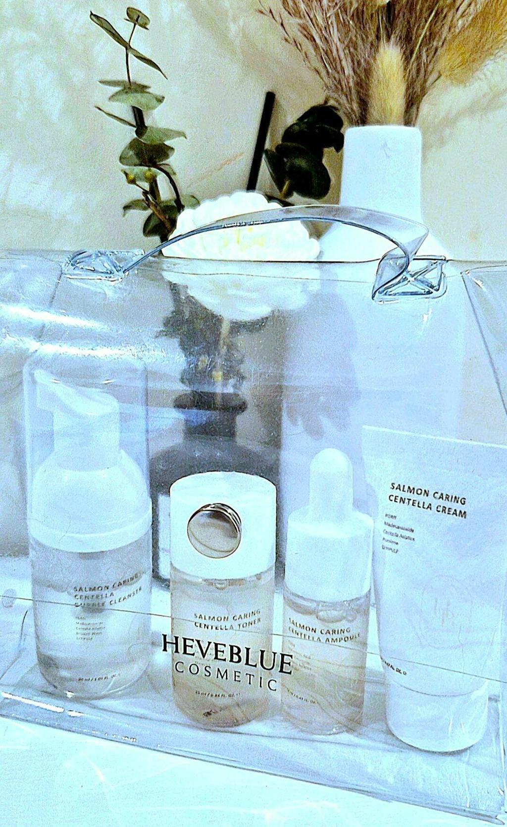 A convenient and portable travel kit featuring HEVEBLUE’s Salmon Line products in mini sizes, neatly packed in a transparent pouch. Lightweight yet comprehensive, the HEVEBLUE Travel Kit is designed to provide effective skincare on the go.