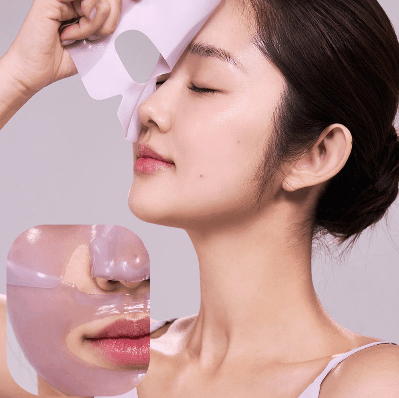 • Hydrogel mask transforms from opaque to translucent as the essence is absorbed into the skin.