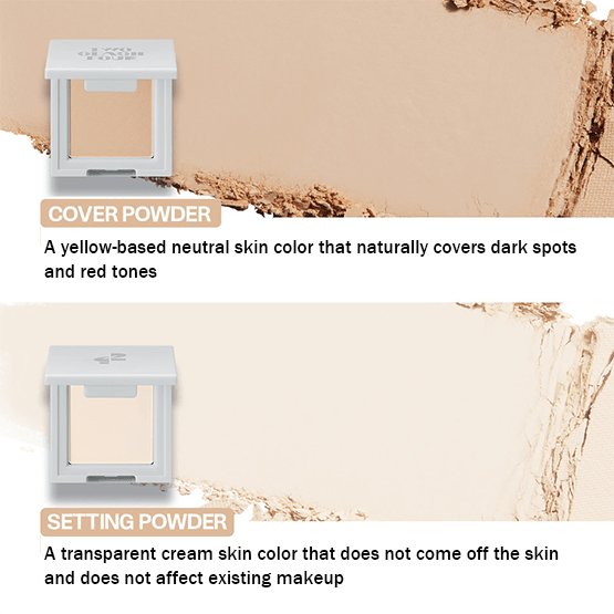 The cover powder is a neutral tone with a yellow base that naturally covers dark spots and redness.
