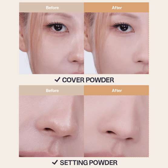 2. Apply cover powder lightly on blemishes or dark circles you wish to conceal, and gently tap to blend.
