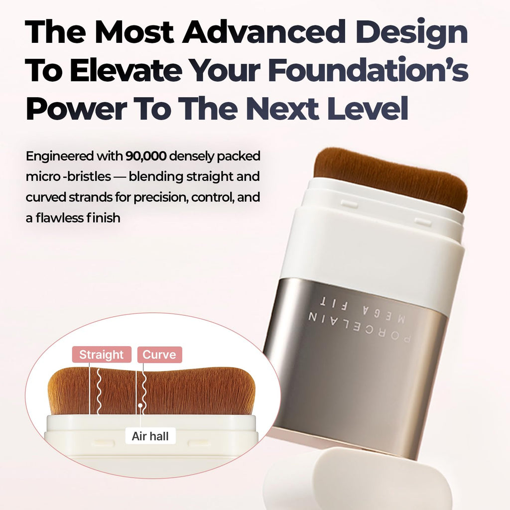 INTEGRATED M-SHAPE BRUSH: This innovative foundation stick features a built-in, high-quality brush with 90,000 ultra-fine bristles sourced from Germany. The ergonomic M-shape design is specifically crafted to follow the contours of your face, ensuring even and thorough coverage across every curve and angle.