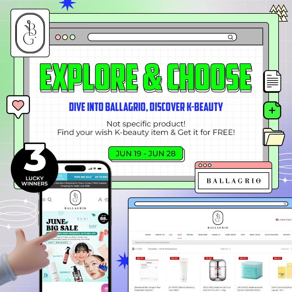 We're thrilled to present the 'EXPLORE & CHOOSE' event – your chance to snag your dream K-beauty product for FREE! 🎁🌈
