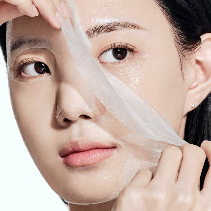 STEP 02 Remove the backing of the mask sheet and place the sheet on your face.